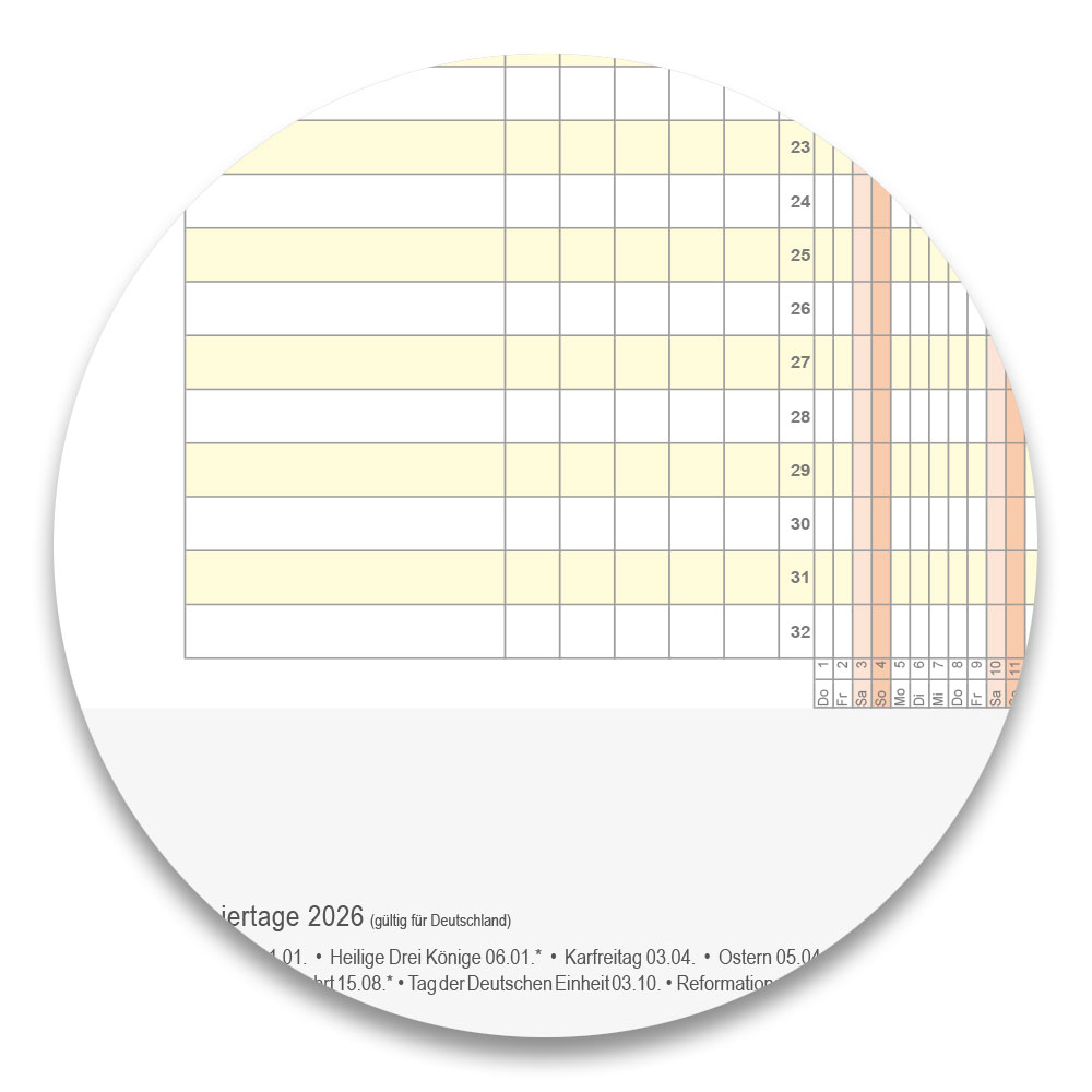 Sehr übersichtlich gestaltet. Keine störenden Feiertage in den Zeilen. Diese sind extra aufgeführt.
