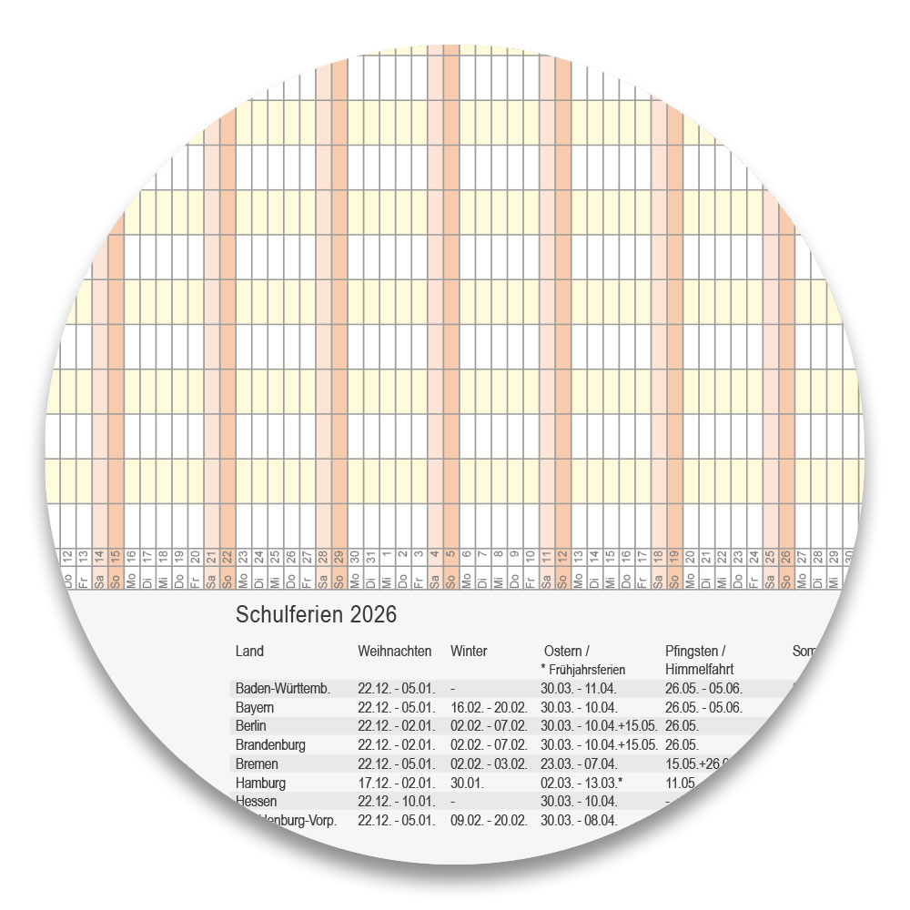 Ferientage (Weihnachtsferien, Osterferien, Pfingstferien, Sommerferien, Herbstferien) alle Bundesländer sind extra aufgeführt.