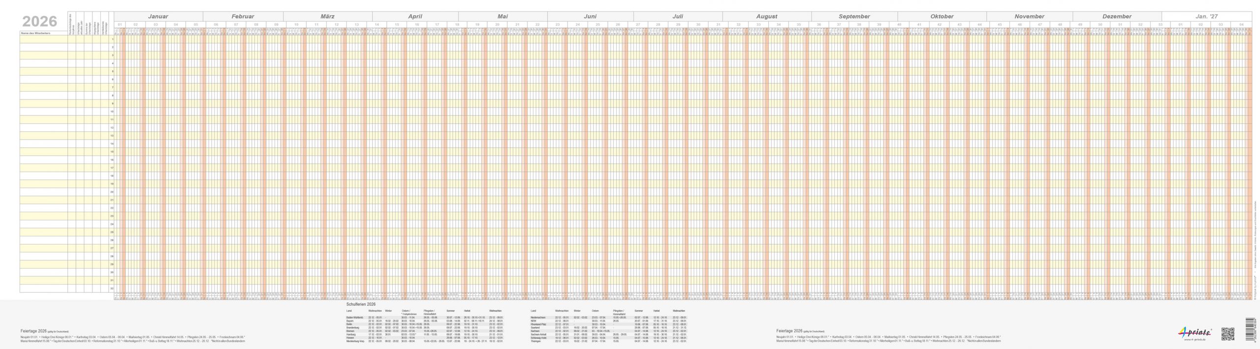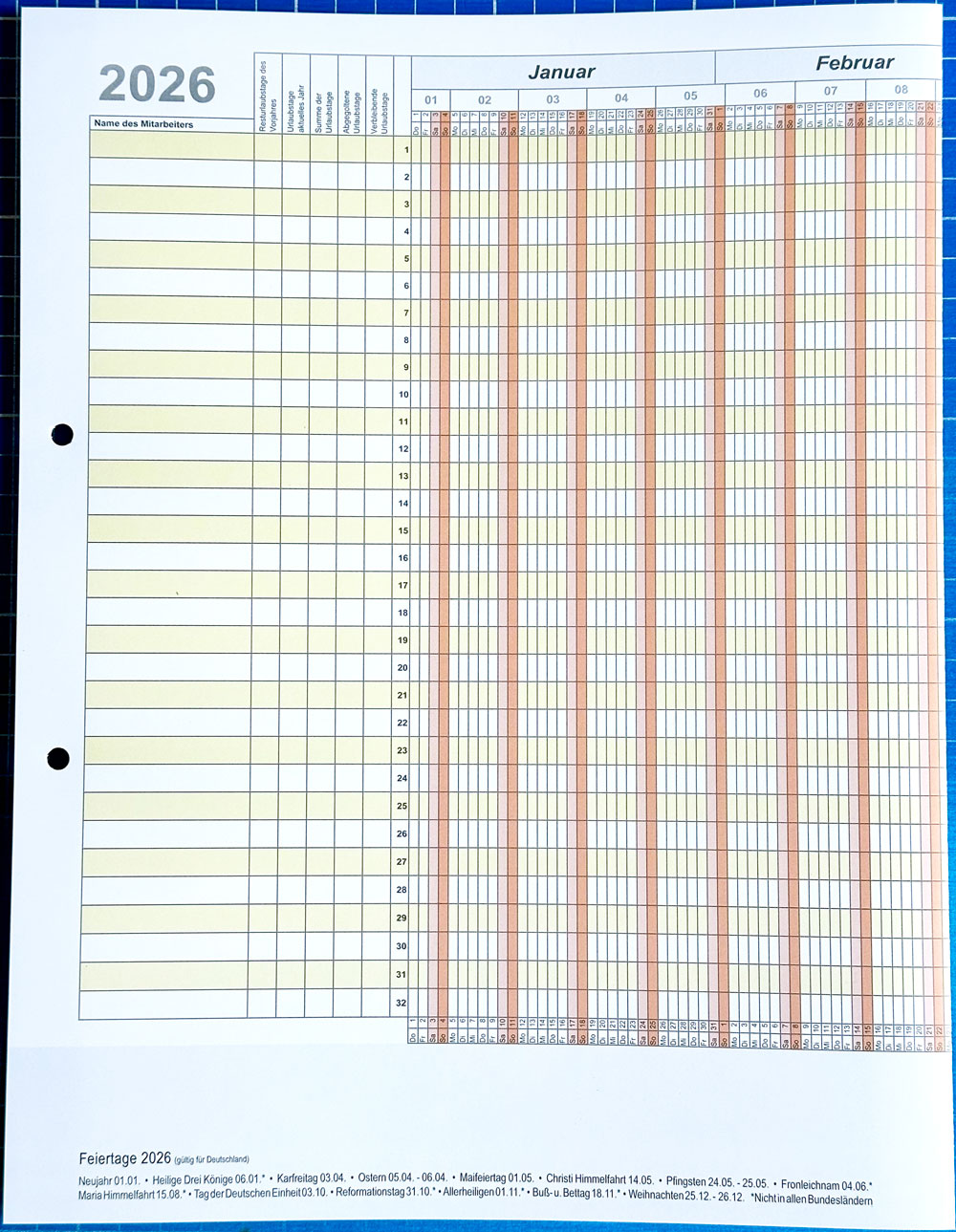Personalplaner – Holyplan 2026 – Kalender für 32 Mitarbeiter/Personen/Objekte